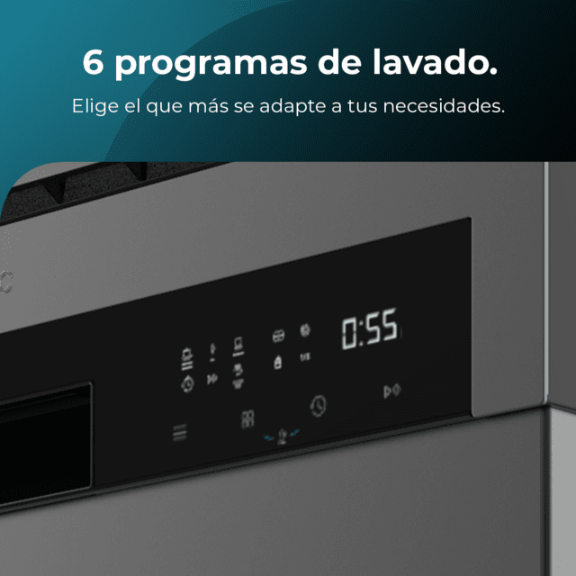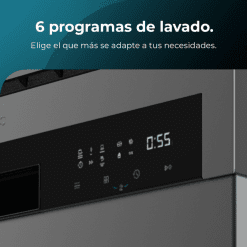 6 programas: elige el programa que más se adapte a tus necesidades en función de lo que tengas que lavar: ollas, vajilla de diario, cristalería delicada… ajustándose en tiempo y temperatura.