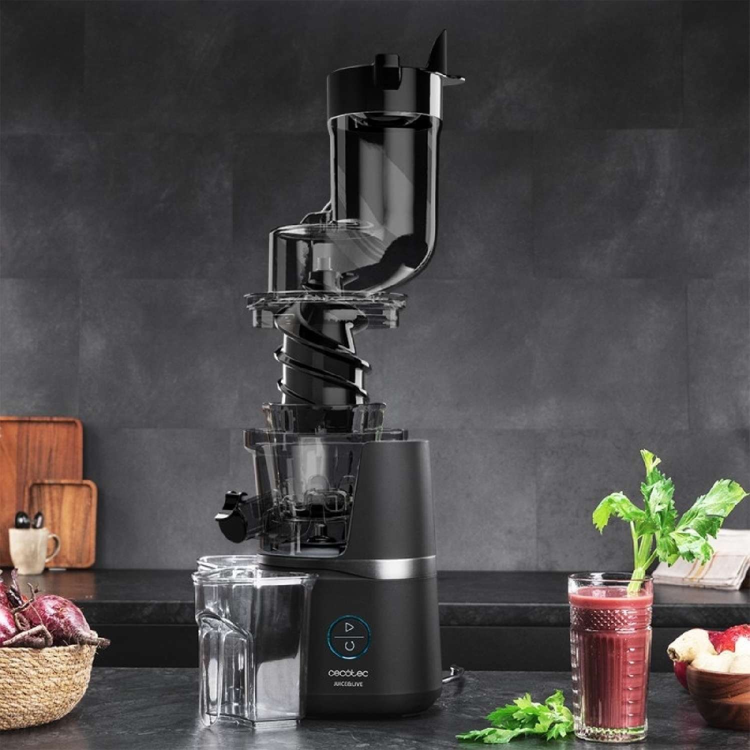 Licuadora con sistema de prensa fría que extrae más zumo a frutas y verduras, mantiene sus propiedades naturales y evita la oxidación.