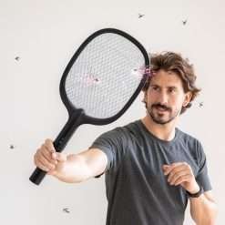 Potente descarga de 3000V: la raqueta emite una potente descarga eléctrica para acabar con los mosquitos de un solo golpe.