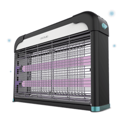 Lámpara mosquito killer con dos tubos de luz ultravioleta con una potencia de 20 W. Incluye cadena para colgarlo.