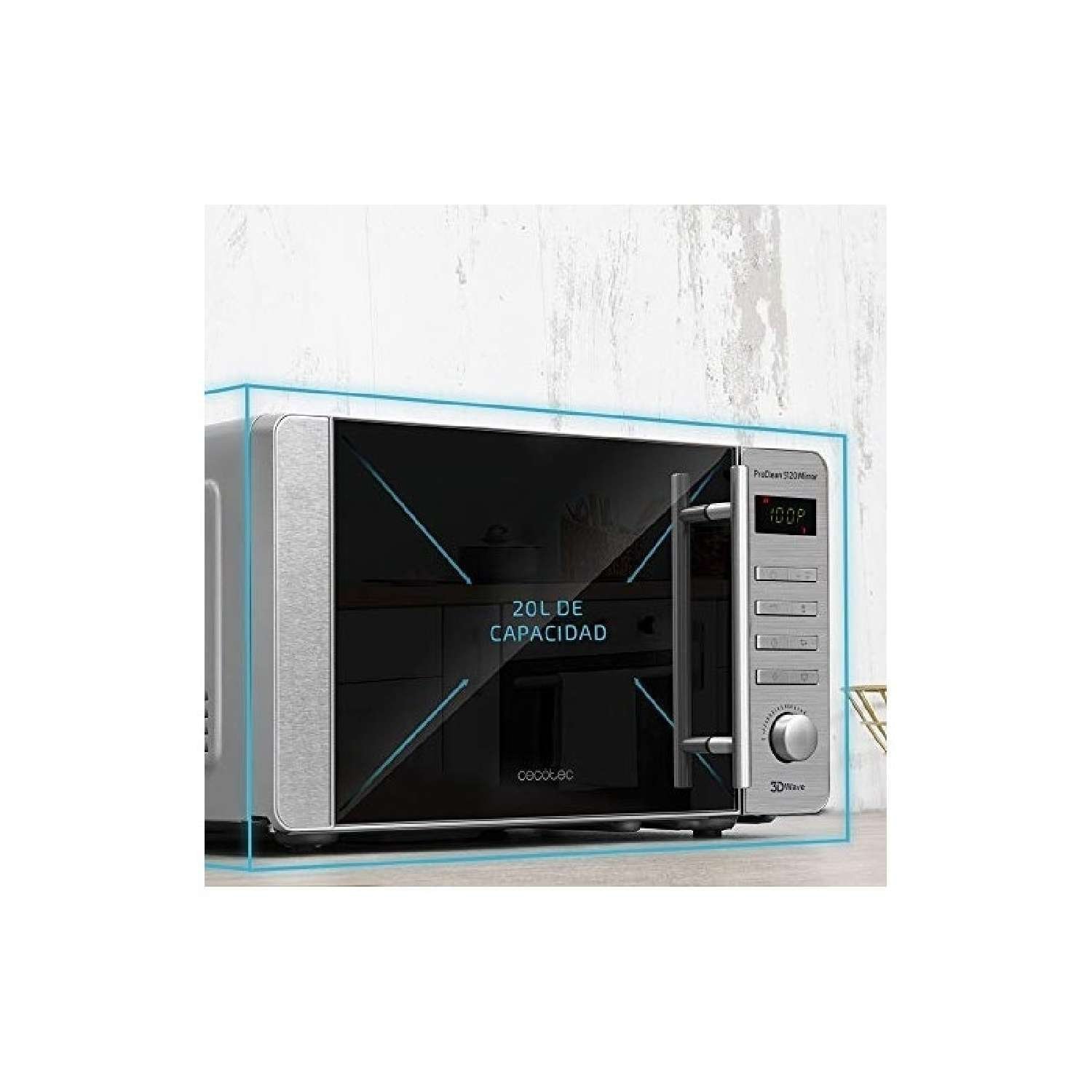 Microondas de acero inoxidable de 20 l de capacidad.