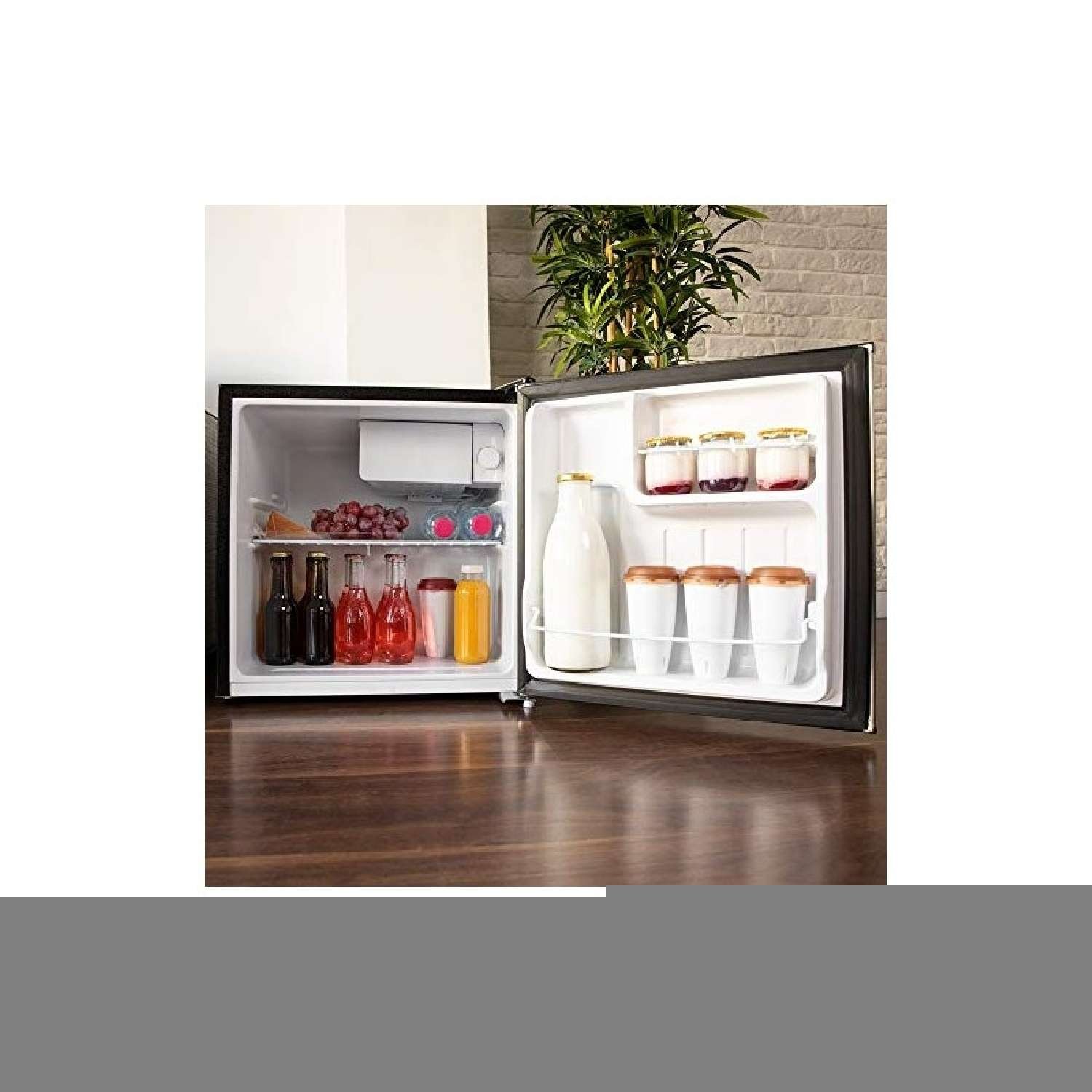 Minibar de 46 litros de capacidad, con compresor, que garantiza un alto rendimiento. Control de temperatura regulable y compartimento congelador.