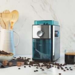 Molinillo eléctrico de café con diseño elegante en acero inoxidable para disfrutar de los mejores cafés.
