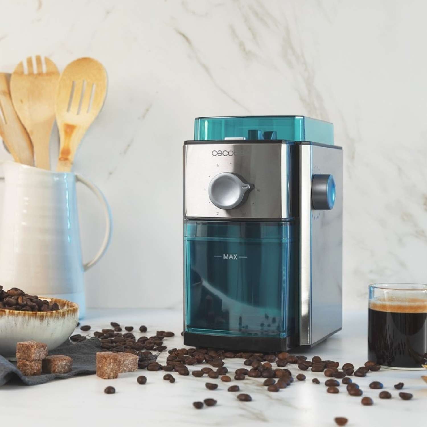 Dispone de 150 W de potencia máxima para moler el café en segundos.
