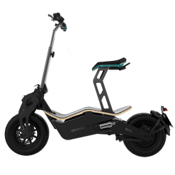 Ciclomotor eléctrico con una potencia nominal de 1000 W y potencia máxima de 1600 W. Doble suspensión, autonomía de 45 km y batería extraíble de litio.