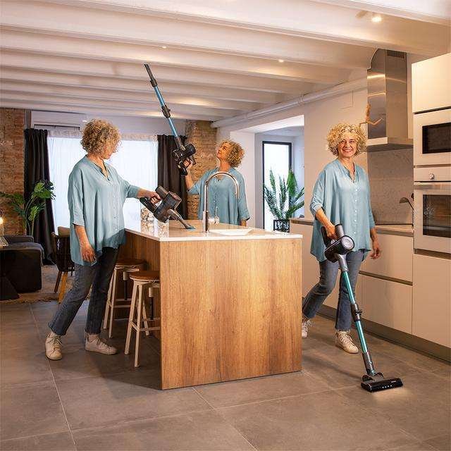 Versatilidad instantánea. Escoge entre aspiración vertical, escoba o de mano sin perder ni un vatio de potencia y con la comodidad de su tecnología 360º que facilita su libertad de movimiento.