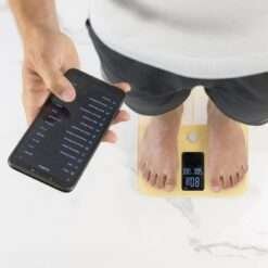 Báscula de baño inteligente de gran pantalla con medición de bioimpedancia y App.
