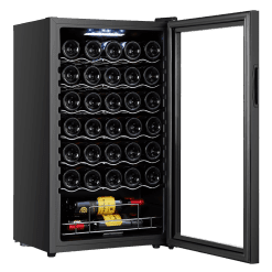Vinoteca de 34 botellas de capacidad con sistema compresor de enfriamiento que garantiza un alto rendimiento. Temperatura regulable y luz LED interior. Ancho 48,2 /Fondo 47 /Alto 80cm