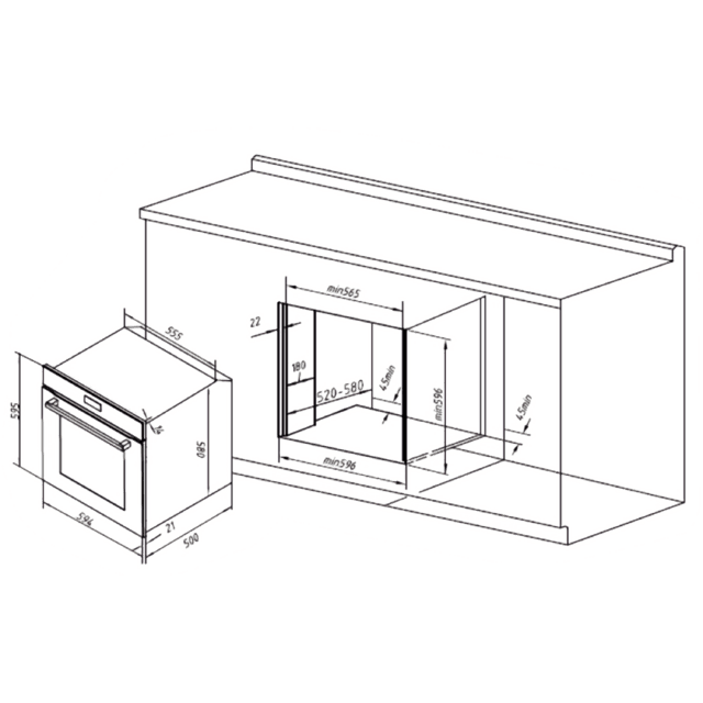 Horno Integrable Bolero Hexa C126000 Inox A de 77 L de capacidad, 4 funciones, 2800 W. 59,4 X 51,8 X 59,4 cm
