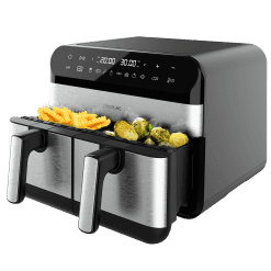 Freidora de aire digital de 9 L de capacidad y 2800 W de potencia, acabados con acero inoxidable y con dos cestillos con temperatura dual