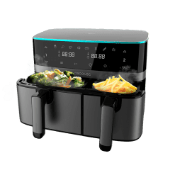 Freidora dietética digital de 9 L de capacidad con con dos cestillos de 5.5 y 3.5 litros, temperatura dual y tecnología PerfectCook.