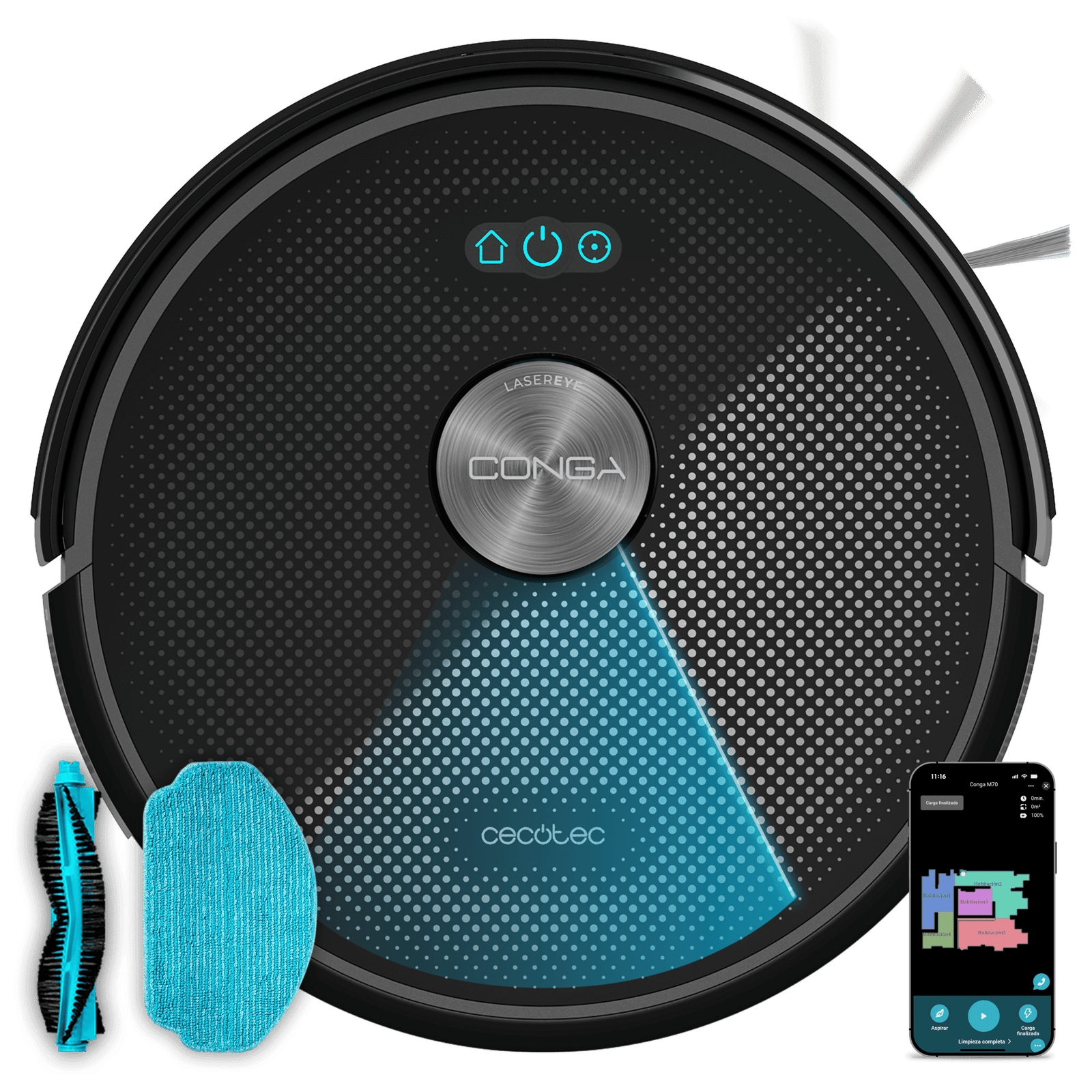 Robot aspirador Conga M50. Navegación láser. 5000 Pa de presión de succión, 160 m2 de autonomía. Cepillo multifunción para todas las superficies.