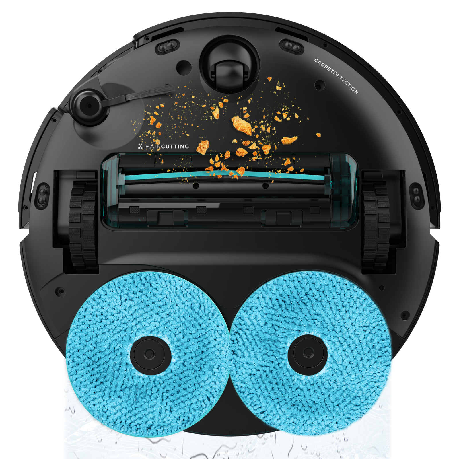 – Elevación adaptativa. Eleva su capacidad de limpieza adaptándose al entorno. En modo fregado, activa la tecnología BrushUp para elevar el cepillo central y evita aspirar líquidos. En modo aspirado deja las mopas en la base. En modo combinado se activa la tecnología SpinUp que sube o baja las mopas según la superficie.
