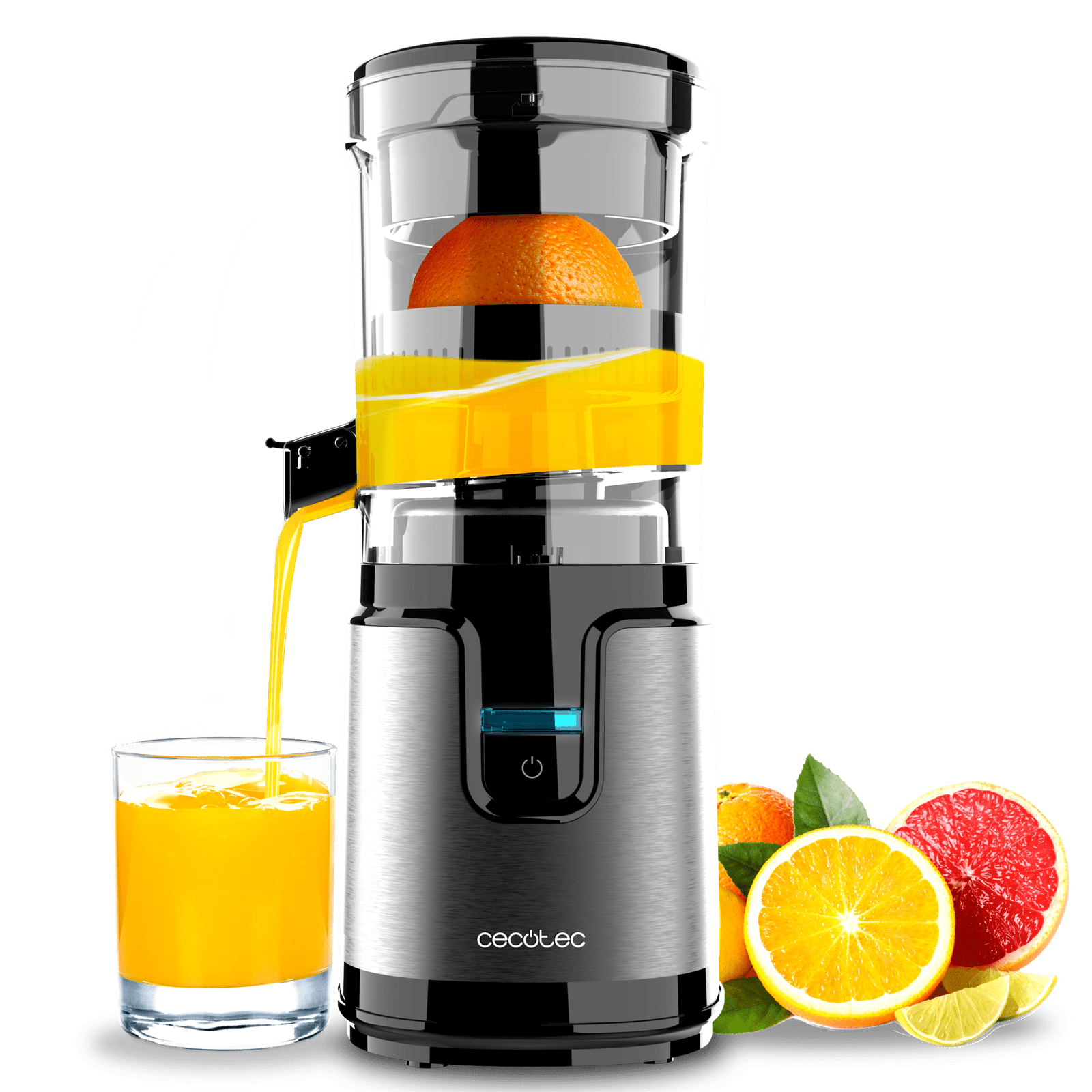 Cecotec Exprimidores eléctricos de torre Essential TowerAdjust Easy Steel Potencia de 160W y capacidad de 0,35L. Incluye un filtro y un cono de plástico. Una única dirección de rotación.