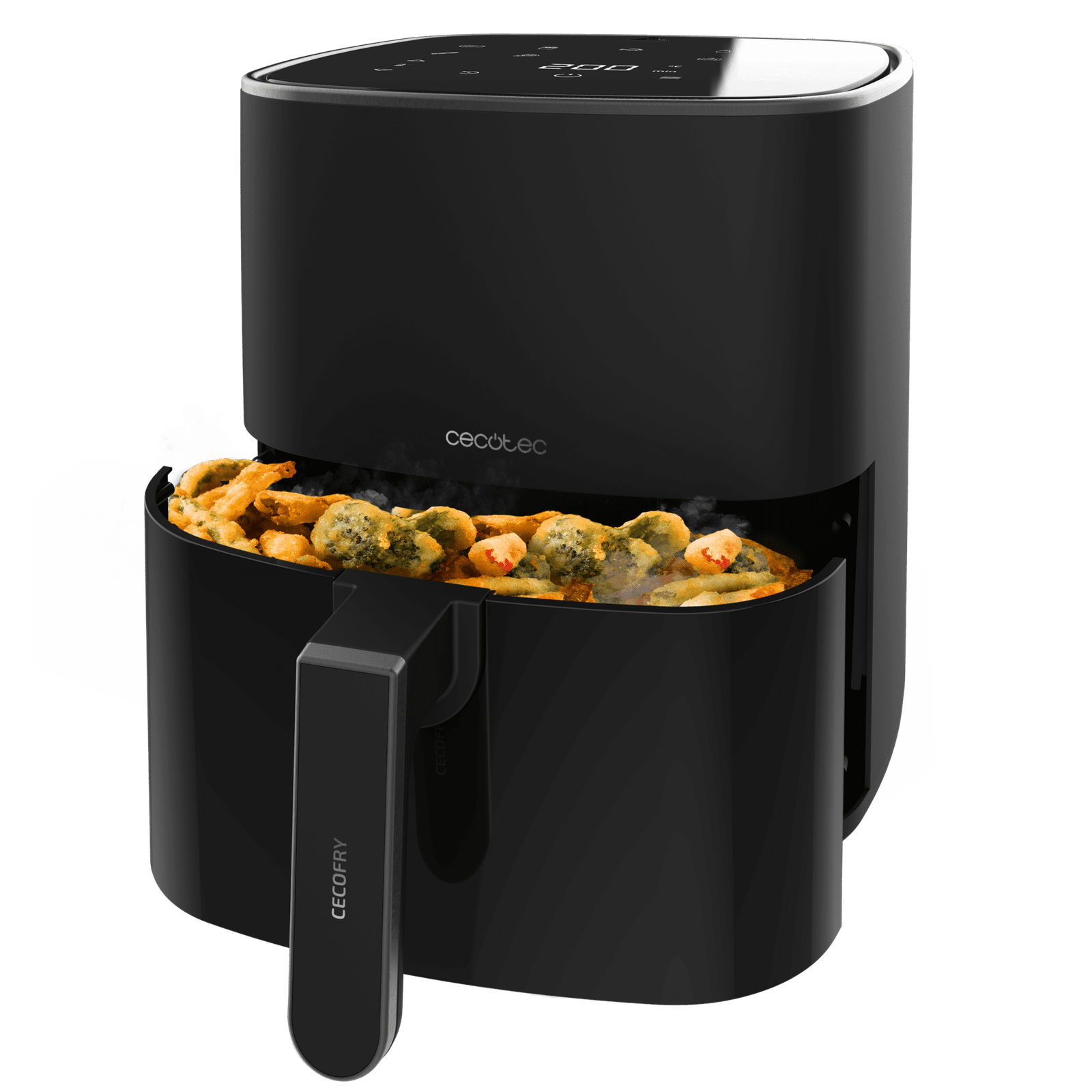 Freidora dietética con 1500 W de potencia que permite cocinar de manera rápida todo tipo de platos con una sola cucharada de aceite.