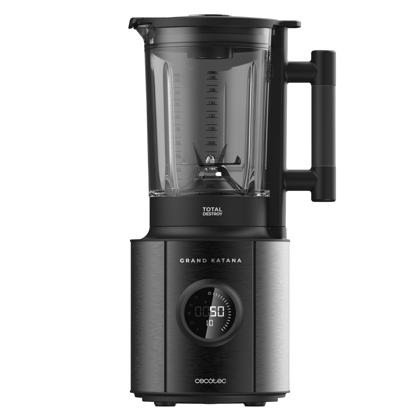 Batidora de vaso con acacados en acero inoxidable de 1800 W, con cuchillas contracortantes con recubrimiento y 1,8 L de capacidad y pantalla LED