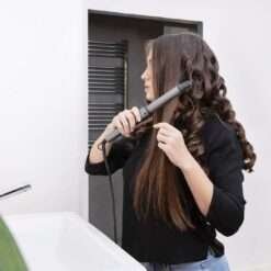 El diseño 2 en 1 de plancha y tenacilla, permite un uso versátil de este producto, permitiendo planchar y rizar el pelo con solo un producto y con acabados profesionales.