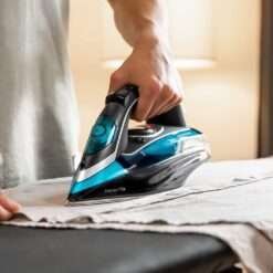 Plancha de vapor ultrapotente de 3100 W con suela anodizada de alta resistencia y mejor deslizamiento Turbo Anodized Pro. Bomba de agua automática y sensor táctil. Doble suela y vapor continuo de 75 g/min y golpe de vapor de 285 g/min.