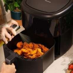 Dosis precisa: aceitera de spray que dosifica el aceite y utiliza la cantidad que se precise para cada alimento a cocinar.