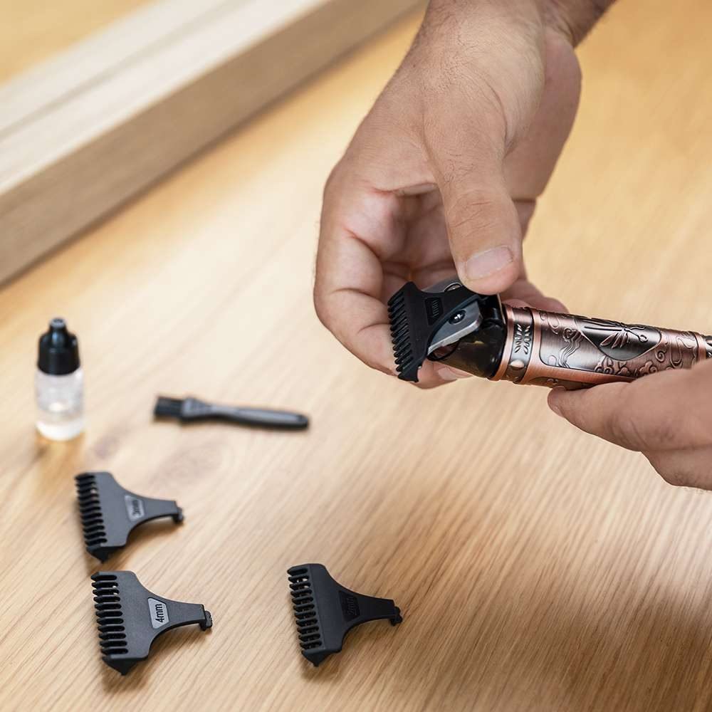 – Incluye 4 peines guía (1 mm, 2 mm, 3 mm y 4 mm) que permiten conseguir una gran variedad de cortes de la forma más cómoda y precisa.