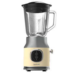 Batidora de vaso retro con 800W de potencia máxima, cuchilla de 4 hojas con recubrimiento de titanio negro y jarra con 1L de capacidad.