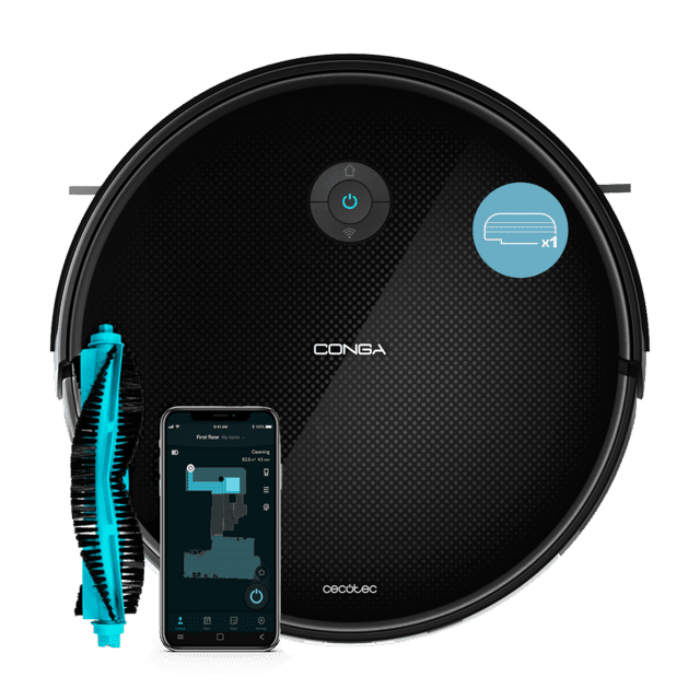 Conga 2499 Ultra Genesis Robot aspirador con tecnología giroscópica. Friega, aspira y barre a la vez. Potencia de succión de 2200 Pa. APP CECOTEC. Cepillo multifunción. Depósito mixto. 2 cepillos laterales. 3 litros de capacidad. Conectividad WiFi 2,4 GhZ y Bluetooth. Mopa de fregado