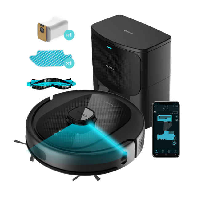 Robot aspirador Conga 8290 Immortal Ultra Home con navegación láser y base de autovaciado. 4 en 1: barre, aspira, friega y pasa la mopa. Potencia de succión de 5500 Pa. 180 minutos de autonomía. Mopa de fregado y 1 cepillo lateral. 3 niveles de potencia de aspiración y de fregado. Control APP y asistentes virtuales. Detección de bolsa automática. 3 litros de capacidad.