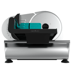 Cortafiambres de 180 W que contiene un disco de 190 mm de diámetro y un sistema de ajuste gradual con máxima precisión de grosor de 0 a 15 mm.