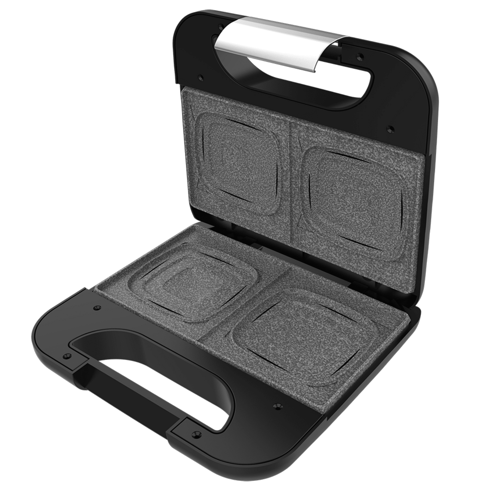 Sandwichera de 2 sándwiches con acabados en acero inoxidable, 800 W de potencia y placas cuadradas con revestimiento antiadherente.