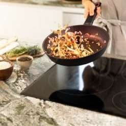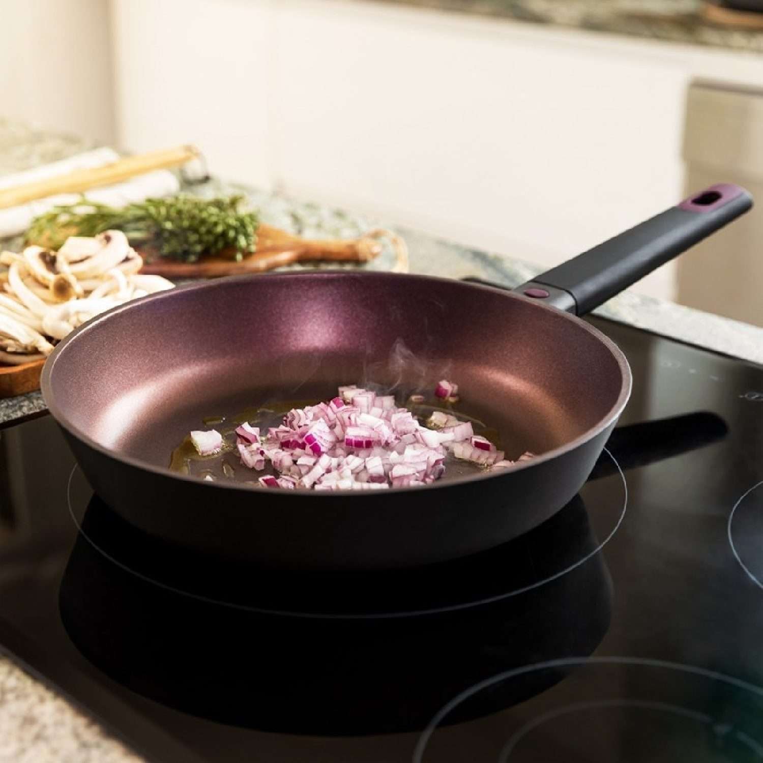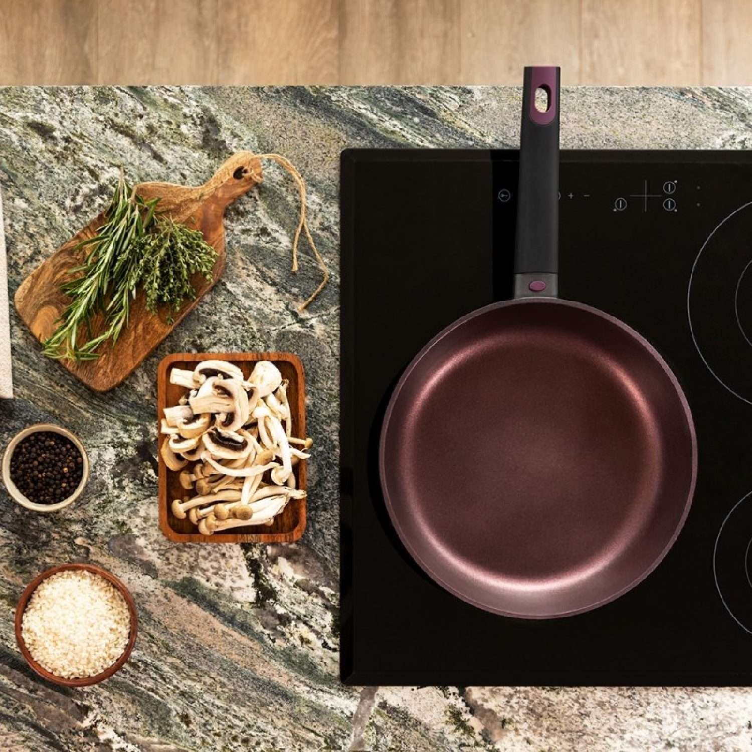 Sartén de 26 cm de aluminio FUNDIDO de alta calidad, cuenta con 6 capas y revestimiento de máxima antiadherencia Select Teflon™ Nonstick Coating, libre de PFOA, con fondo difusor de calor Full Induction, aptas para lavavajillas y para todo tipo de cocinas incluida la de inducción. Con fondo indeformable de 5 mm de espesor.