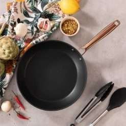 Sartén de 28 cm de aluminio FORJADO con revestimiento antiadherente Platinum Plus Teflon™ Nonstick Coating 100 % libre de PFOA. Mango remachado semiprofesional de acero inoxidable acabado en color rosa. Fondo difusor de calor Full Induction. Apta para horno hasta 230ºC, apta para lavar en lavavajillas y para todo tipo de cocinas incluida inducción. Compuesta por 5 capas y 3,4 mm de base para inducción.