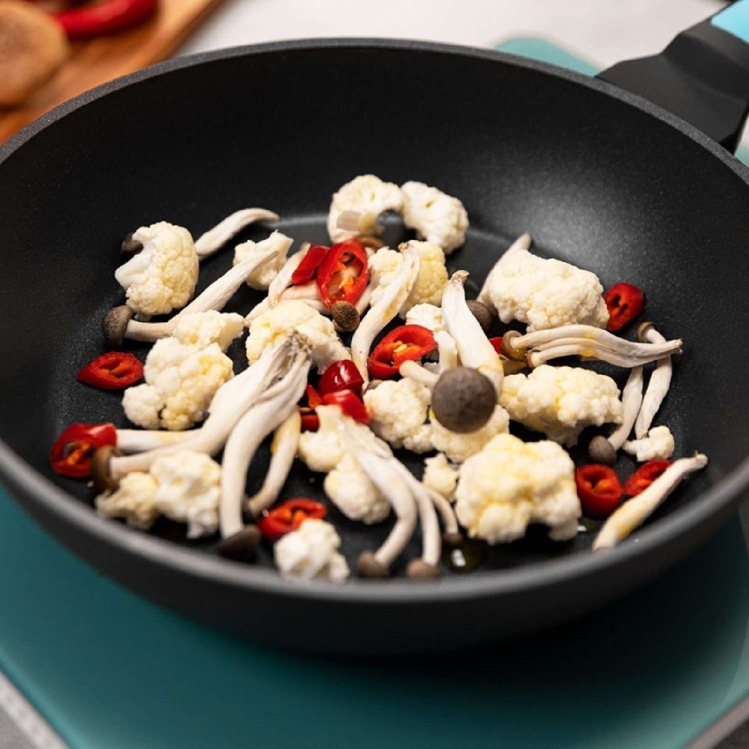Sartén de 24cm de aluminio FORJADO de alta calidad, cuenta con 6 capas y revestimiento de máxima antiadherencia Platinum Plus Teflon™ Nonstick Coating, libre de PFOA, con fondo difusor de calor Full Induction, aptas para lavavajillas y para todo tipo de cocinas incluida la de inducción. Con fondo indeformable de 5 mm de espesor.