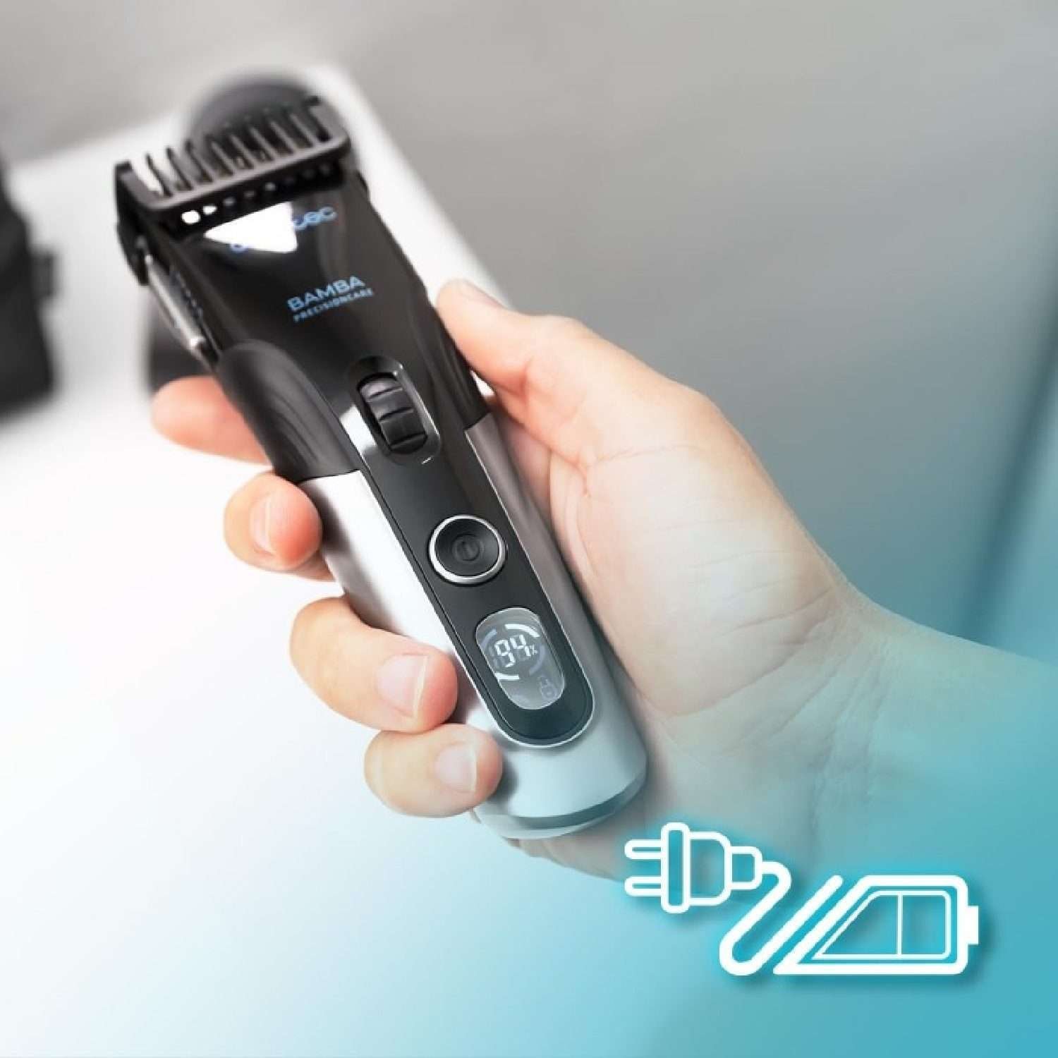 Cortapelos Bamba PrecisionCare Titanium. Cuchilla de Acero Inoxidable con Revestimiento de Titanio, Batería de Litio, Autonomía hasta 120 minutos, Uso con y sin Cable, 3 Peines