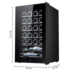 Vinoteca en negro de 24 botellas de capacidad con sistema compresor de enfriamiento, temperatura regulable entre 5-18ºC y panel de control táctil.