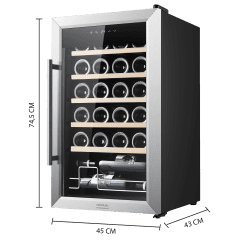 Vinoteca con puerta y tirador inox de 24 botellas de capacidad con sistema compresor de enfriamiento, temperatura regulable entre 5-18ºC y panel de control táctil.