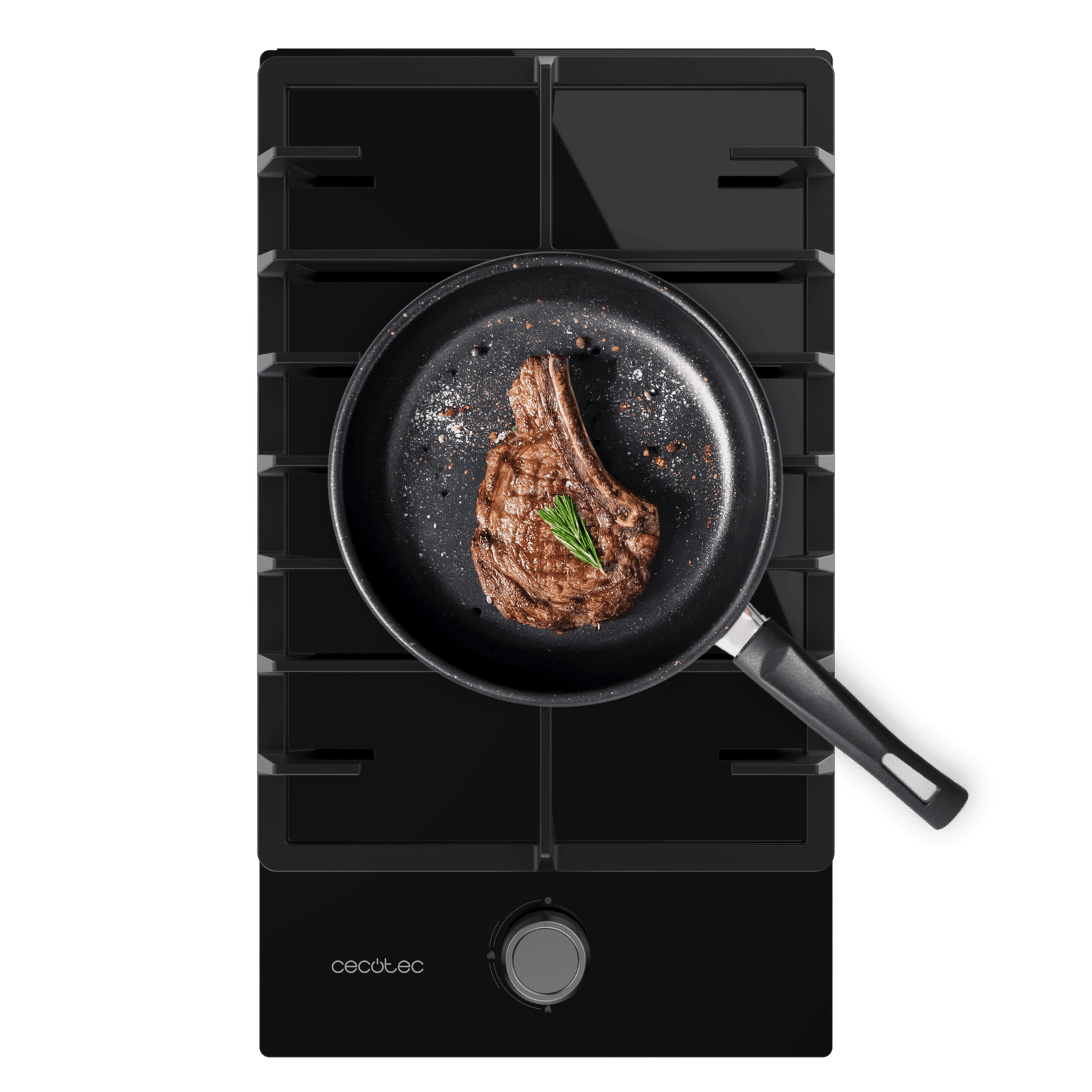 1 Fuego, acabado en cristal negro con parrilla completa de hierro fundido. Los acabados de alta calidad hacen que el rendimiento y la durabilidad de estas parrillas resisten cualquier tipo de cocinado.