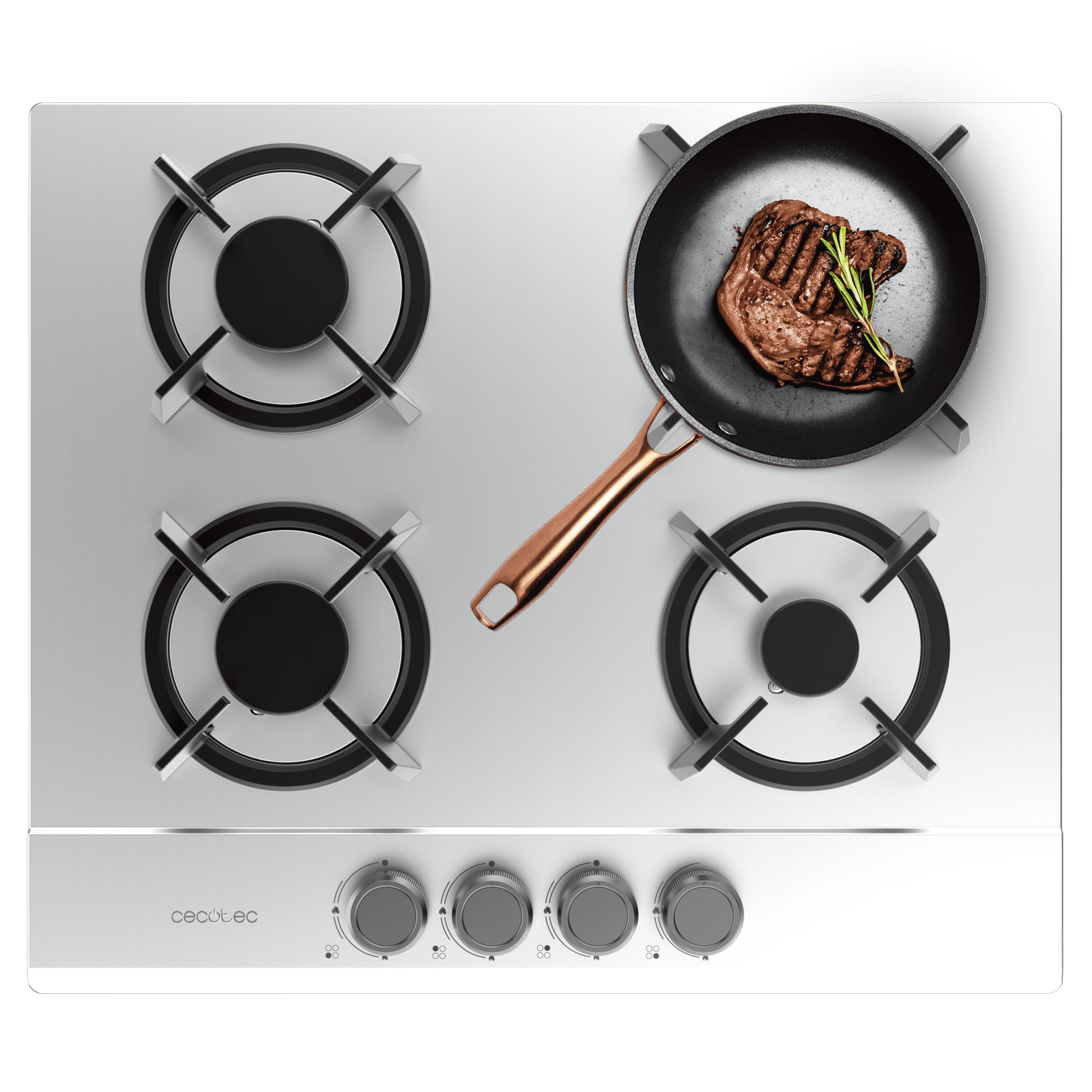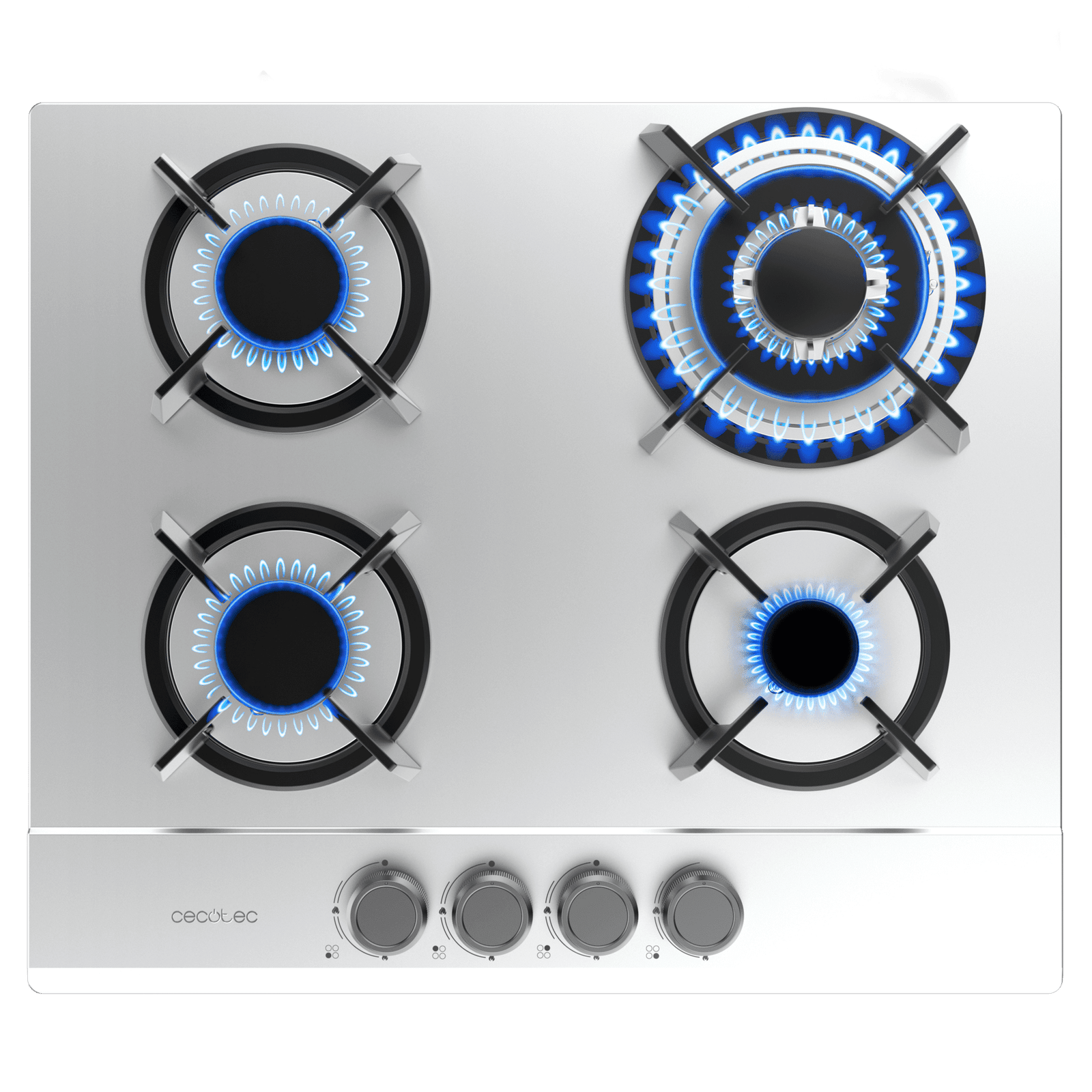 4 Fuegos, acabado en acero inoxidable con parrillas individuales circulares de hierro fundido. Los acabados de alta calidad hacen que el rendimiento y la durabilidad de estas parrillas resisten cualquier tipo de cocinado.