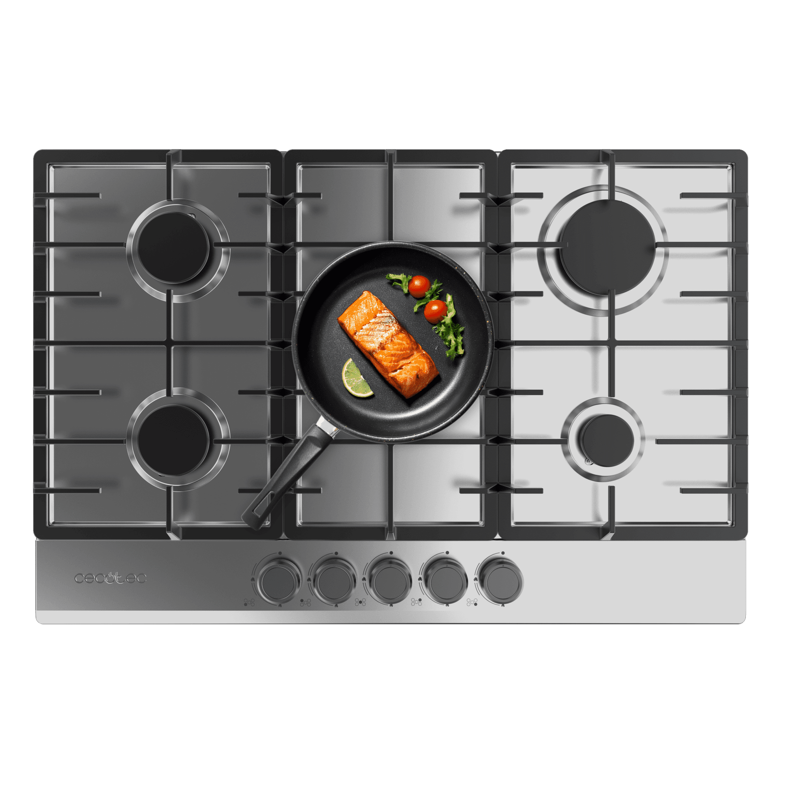 5 Fuegos, acabado en acero inoxidable con parrillas completas de hierro fundido. Los acabados de alta calidad hacen que el rendimiento y la durabilidad de estas parrillas resisten cualquier tipo de cocinado.