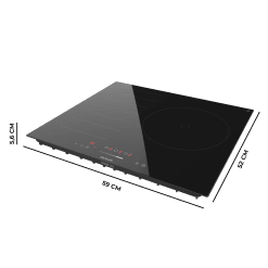 Placa de inducción de 1 zona y 1 zona flex, 9 niveles, Temporizador, Booster Function, potencia máx. 6600W, Touch Slider control, Stop&Go, Kid Lock y Low Power Heating.