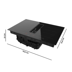 Placa de inducción de 2 zonas TotalFlex con campana extractora integrada, potencia máx. de 7400W, 15 niveles con función Booster, Temporizador, Indicador residual de calor, Kid Lock, Apagado de seguridad automático, Succión de 630m3/H, 3 velocidades de succión con función Booster, control automático de campana, filtros de carbono, Clase A, Touch Slider Control.