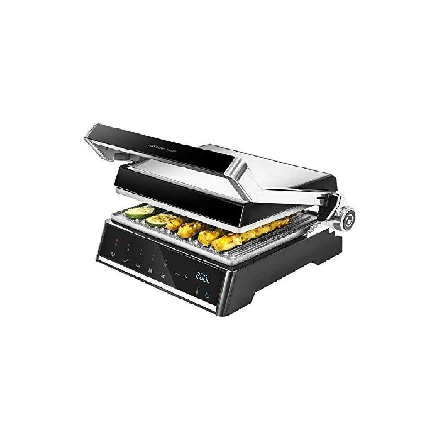 Parrilla eléctrica de 2000 W con sistema AutoCook que ajusta el tiempo y temperatura en función del modo y el punto de cocción seleccionados, placas extraíbles con revestimiento RockStone aptas para lavavajillas y apertura de 180º.