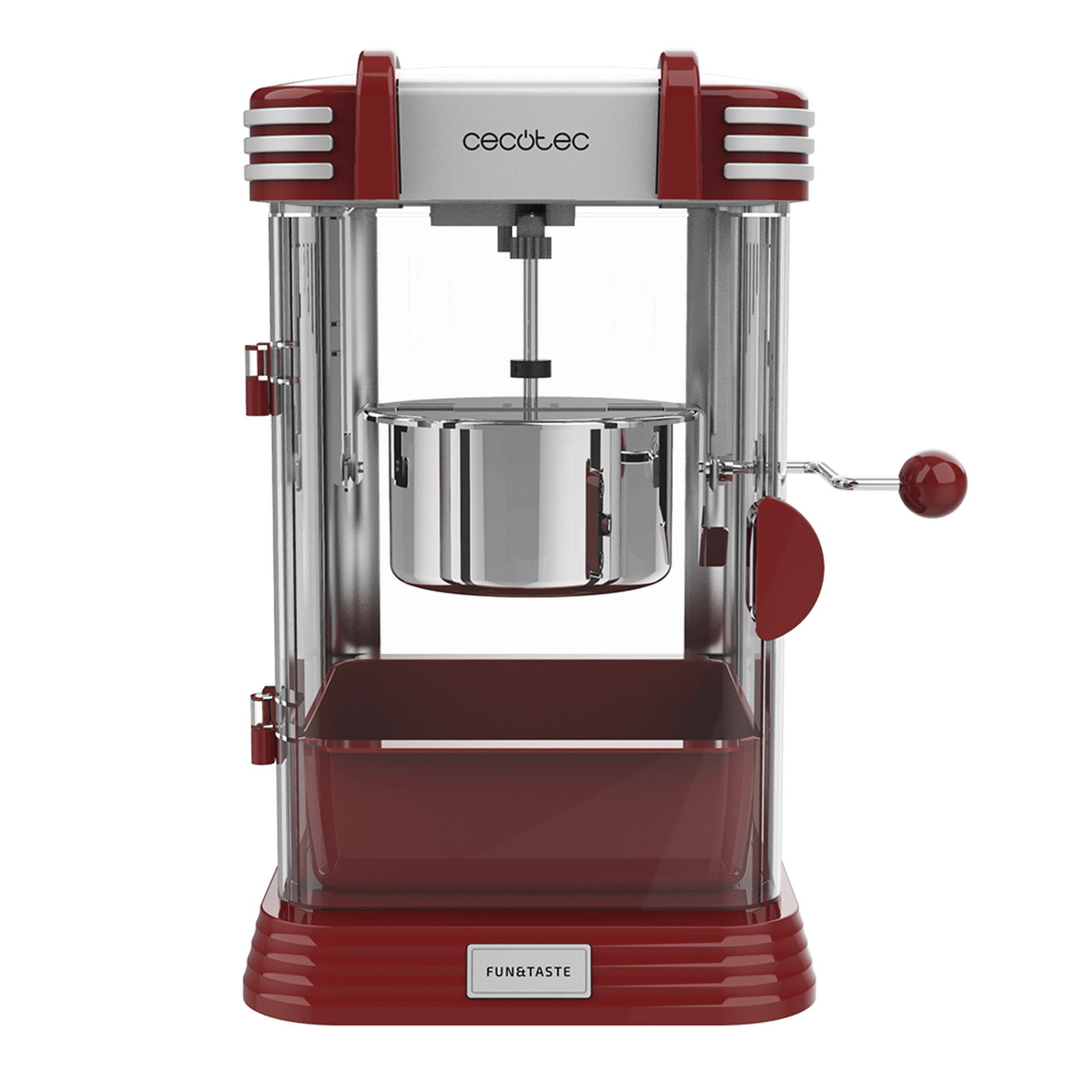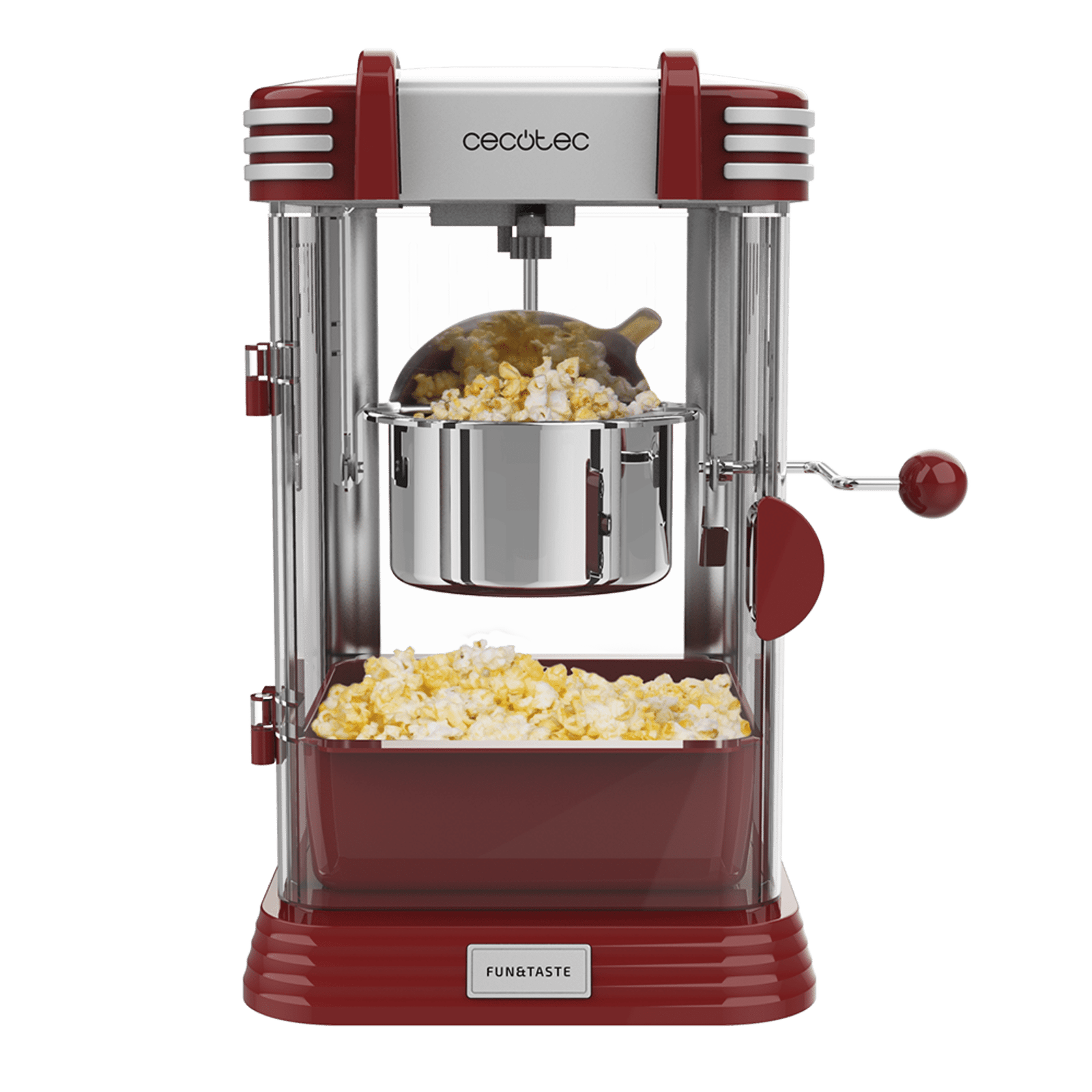 Palomitero Eléctrico Fun&Taste P´Corn Classic. 300 W, Diseño Retro, Olla de Acero Inoxidable de 500 ml, Bandeja extraíble, Potencia 300 W, Luz Interior, Cuchara dosificadora