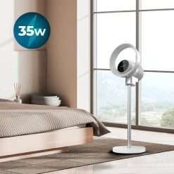 El ventilador está diseñado con un motor DC y 35 W de potencia para refrescar y purificar el aire de tu hogar de forma rápida y eficaz.