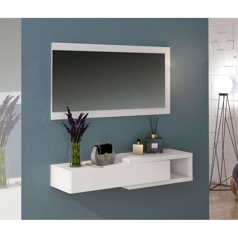 El espejo que incluye es rectangular, y cuenta con un tablero de respaldo, que además de dar más estabilidad al espejo logran un estilo especial en el conjunto. Todo con terminado en color blanco.