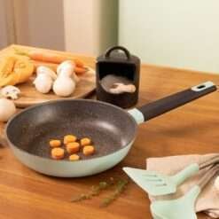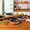 Set de Sartenes de 20-24-28 cm de aluminio FUNDIDO de alta calidad, cuenta con 5 capas y revestimiento de máxima antiadherencia Teflon® Select, libre de PFOA, con fondo difusor de calor Full Induction, aptas para lavavajillas y para todo tipo de cocinas incluida la de inducción. Con fondo indeformable de 5 mm de espesor.