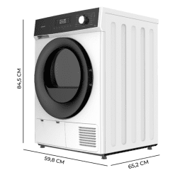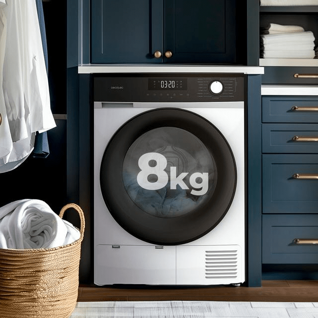 - Capacidad 8 kg: permite secar hasta 8 kg de ropa en una sola carga.