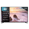 Televisión LED 65” con resolución 4K UHD, sistema operativo Android TV 11, Chromecast, HDR10+, Google Voice Assistant, clase E, con peana central.