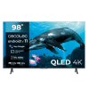 Televisión QLED de 98″ con resolución 4K UHD, sistema operativo Android TV 11, Local Dimming, Google Voice Assitant y Chromecast, sistema Dolby Vision & Atmos. Subwoofer 15W adicional.