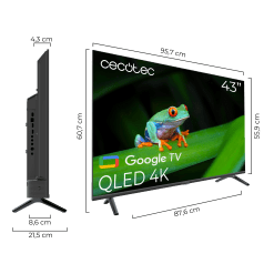 Televisión QLED de 43″ con resolución 4K UHD, sistema operativo Google TV, Dolby Vision&Atmos, Wide Color Gammut, VRR, HDMI 2.1, USB 3.0, HDR10, 16 Gb ROM, Google Voice Assitant y Chromecast.
