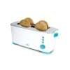 Tostadora de doble ranura corta con capacidad para dos tostadas, 800 W y soporte para panecillos y bollería.